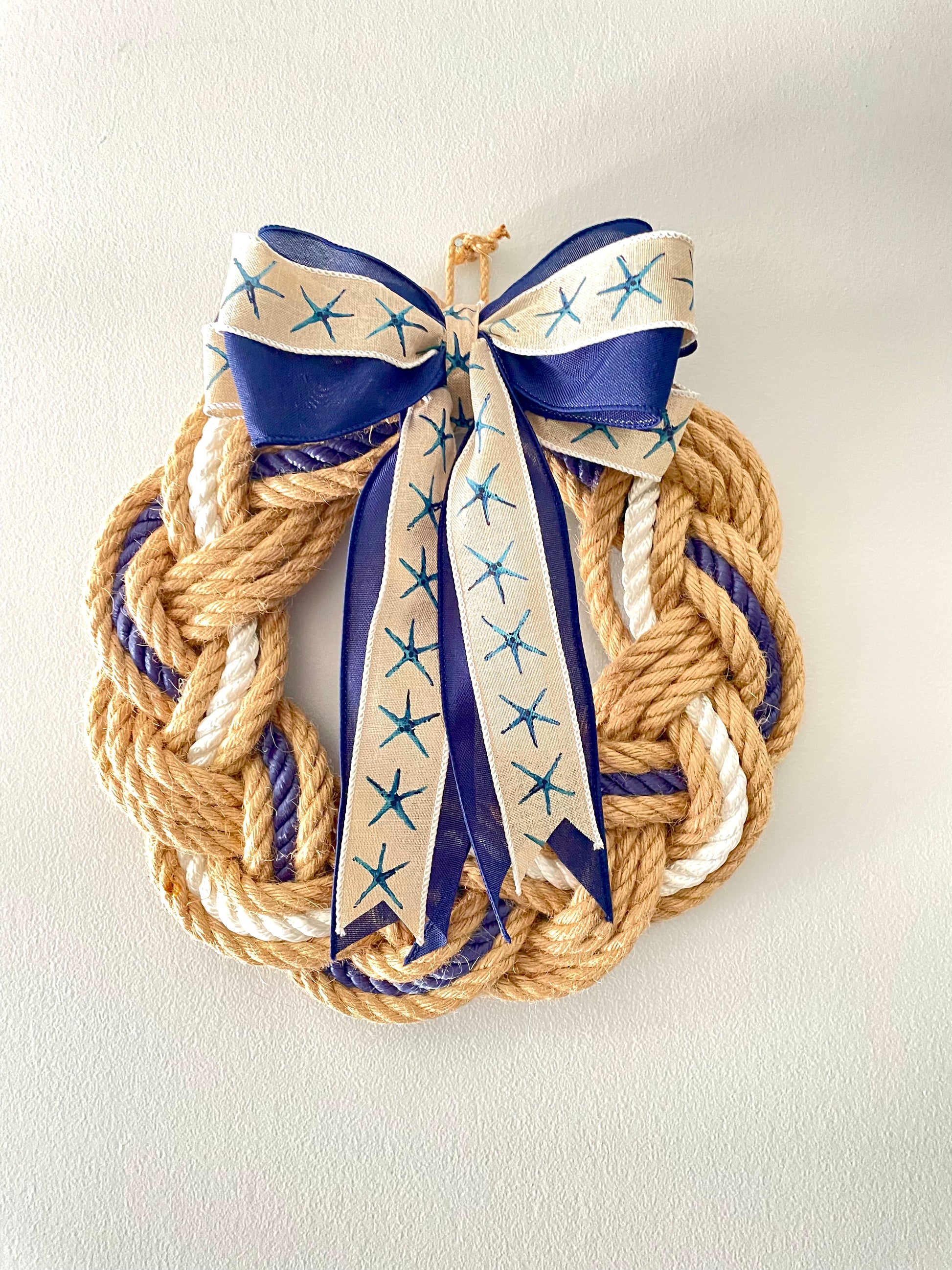 Named after the Beautiful beach in Cohasset, ma. This 13" nautical braided jute wreath features a navy blue nylon boat rope accent, adding a touch of coastal charm to any space. Handcrafted with durable materials, it is the perfect addition to your home or office decor. Elevate your nautical theme with this beautiful wreath.