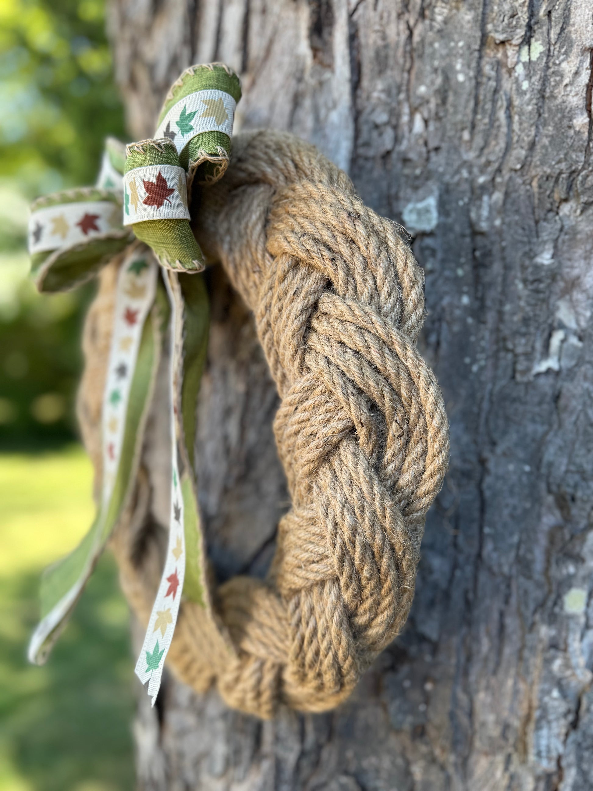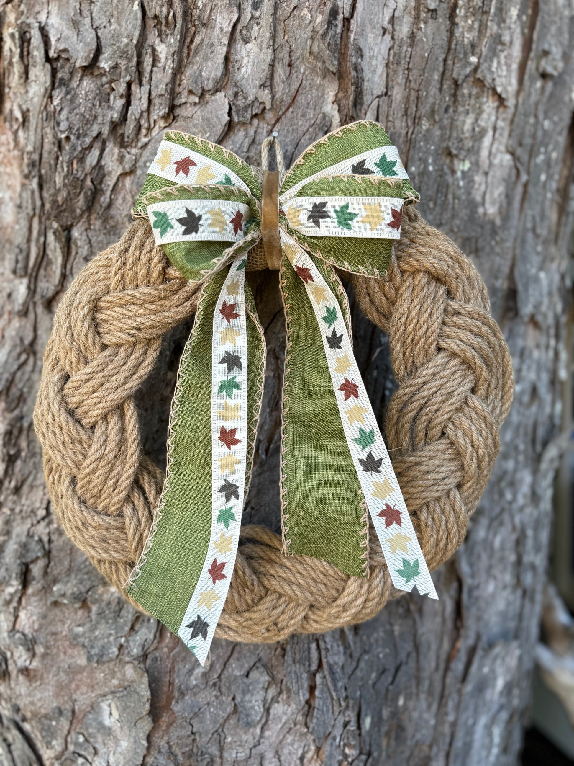 This 16" Autumn Maple rope wreath is enhanced with a nautical fall bow, making it the perfect addition to your seasonal décor. The maple leaves offer a touch of autumnal beauty, while the sturdy rope construction ensures long-lasting use. Perfect for any style of home, it will add a touch of warmth and charm to your door or wall.