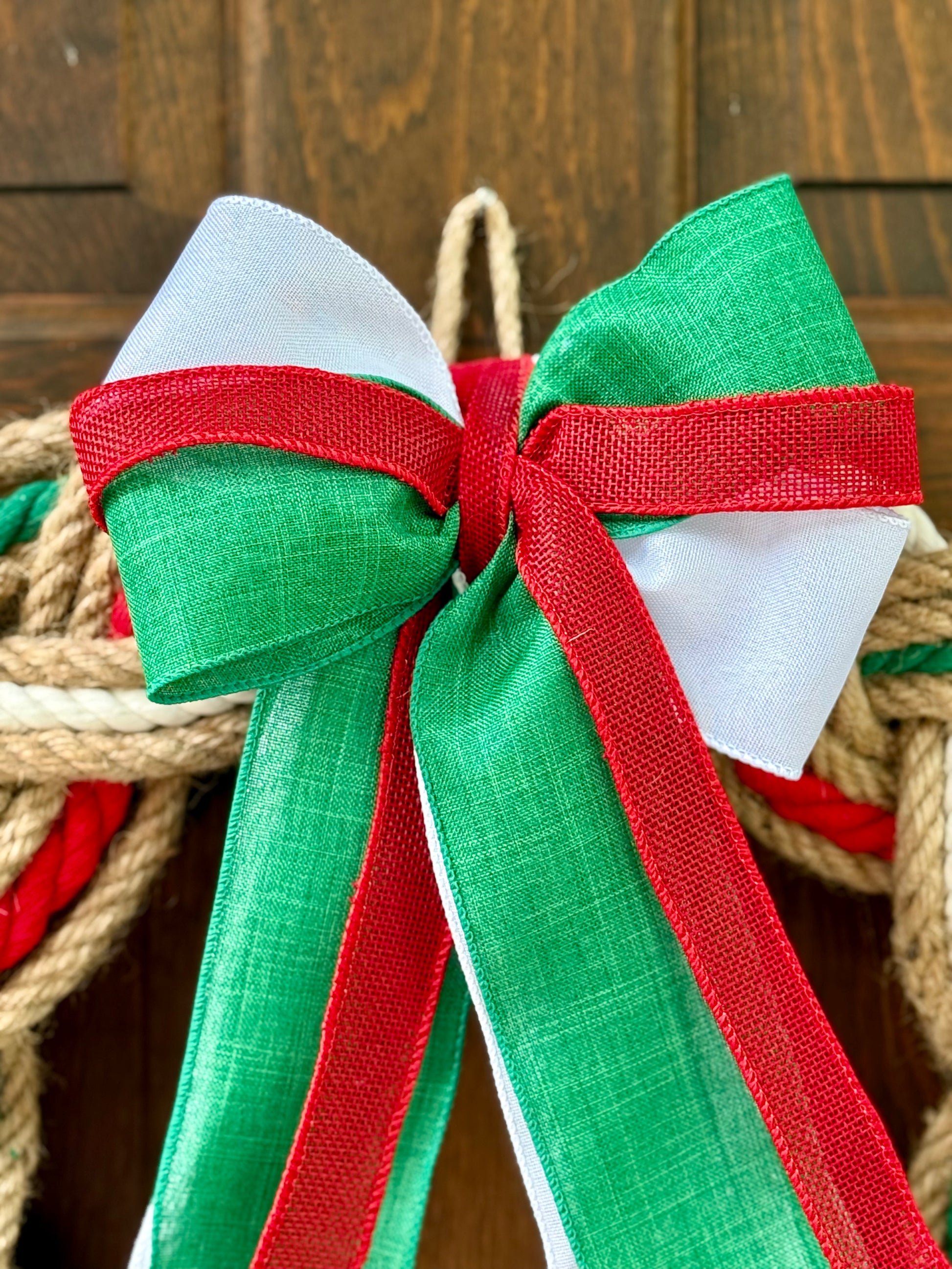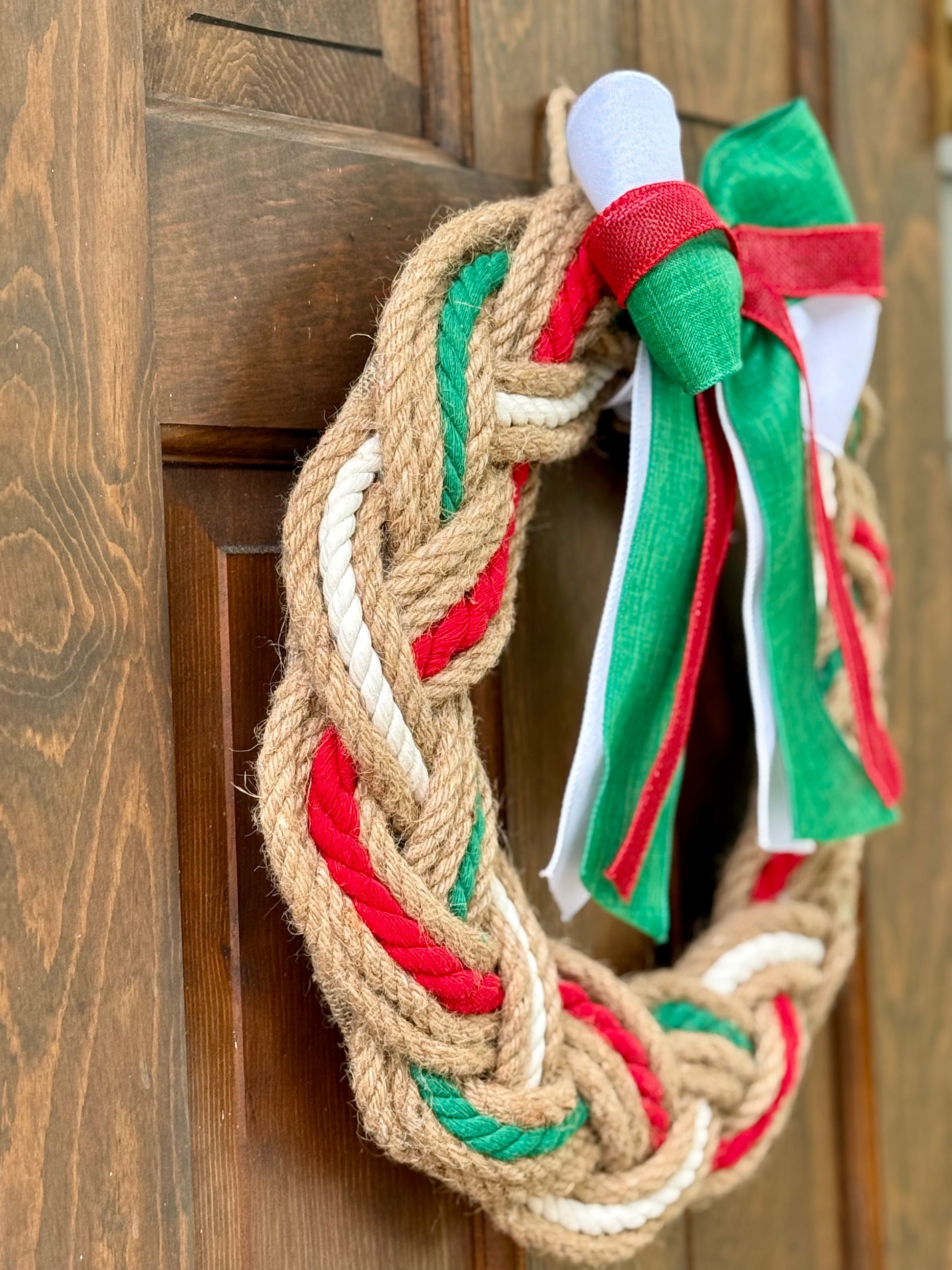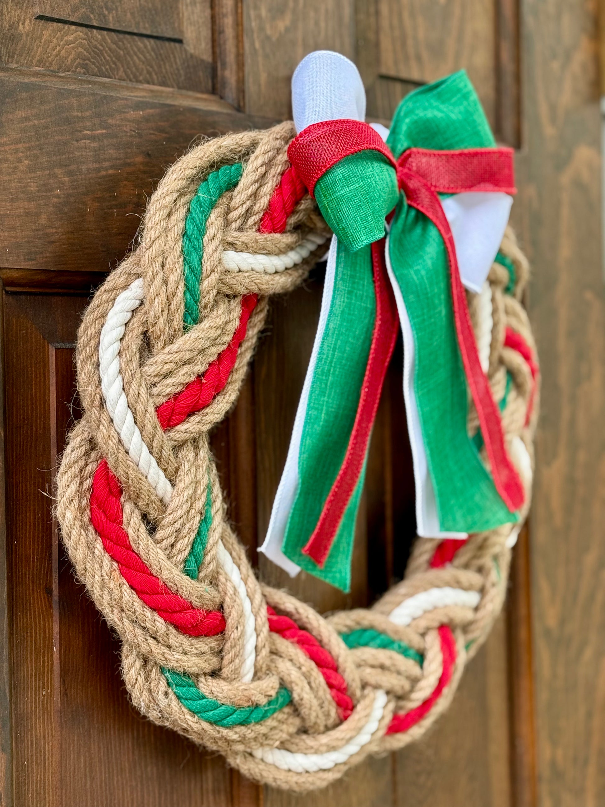 Introducing the 16” Holiday wreath, a festive addition to your holiday decor. Crafted with red, green, and white jute rope, this wreath boasts a traditional and elegant look. Bring the holiday spirit into your home with this beautiful wreath.