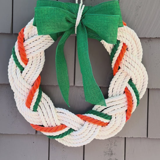 This 16” Irish Flag Rope Wreath is the perfect addition to your St. Patrick's Day decorations. The rope wreath design adds a rustic touch to any door or wall, while the bold Irish flag colors add a festive touch. Made with durable materials, it can be used year after year.