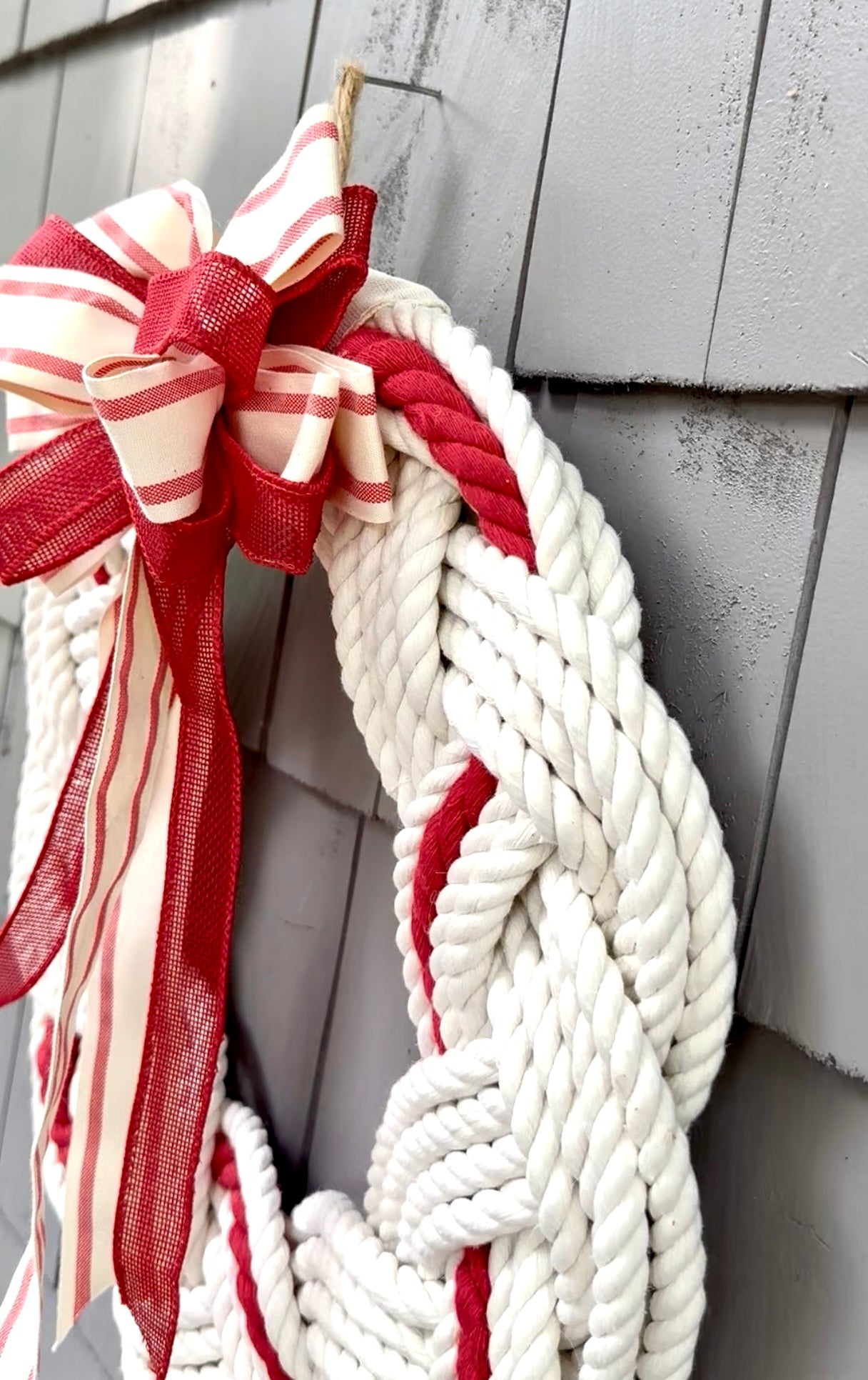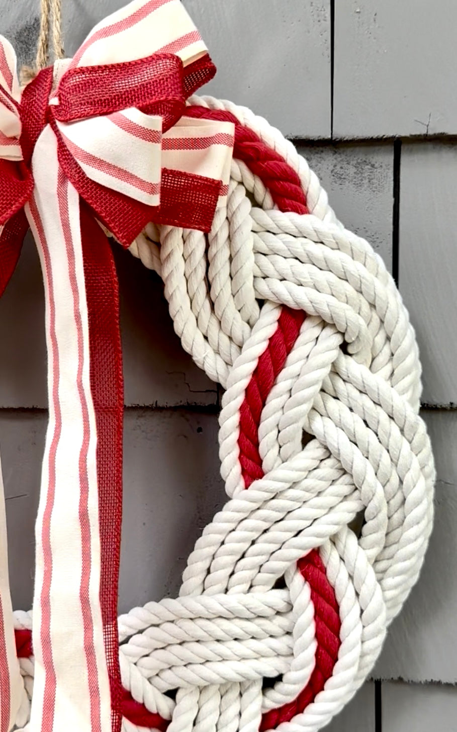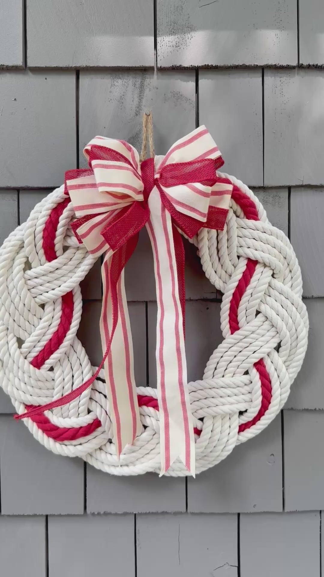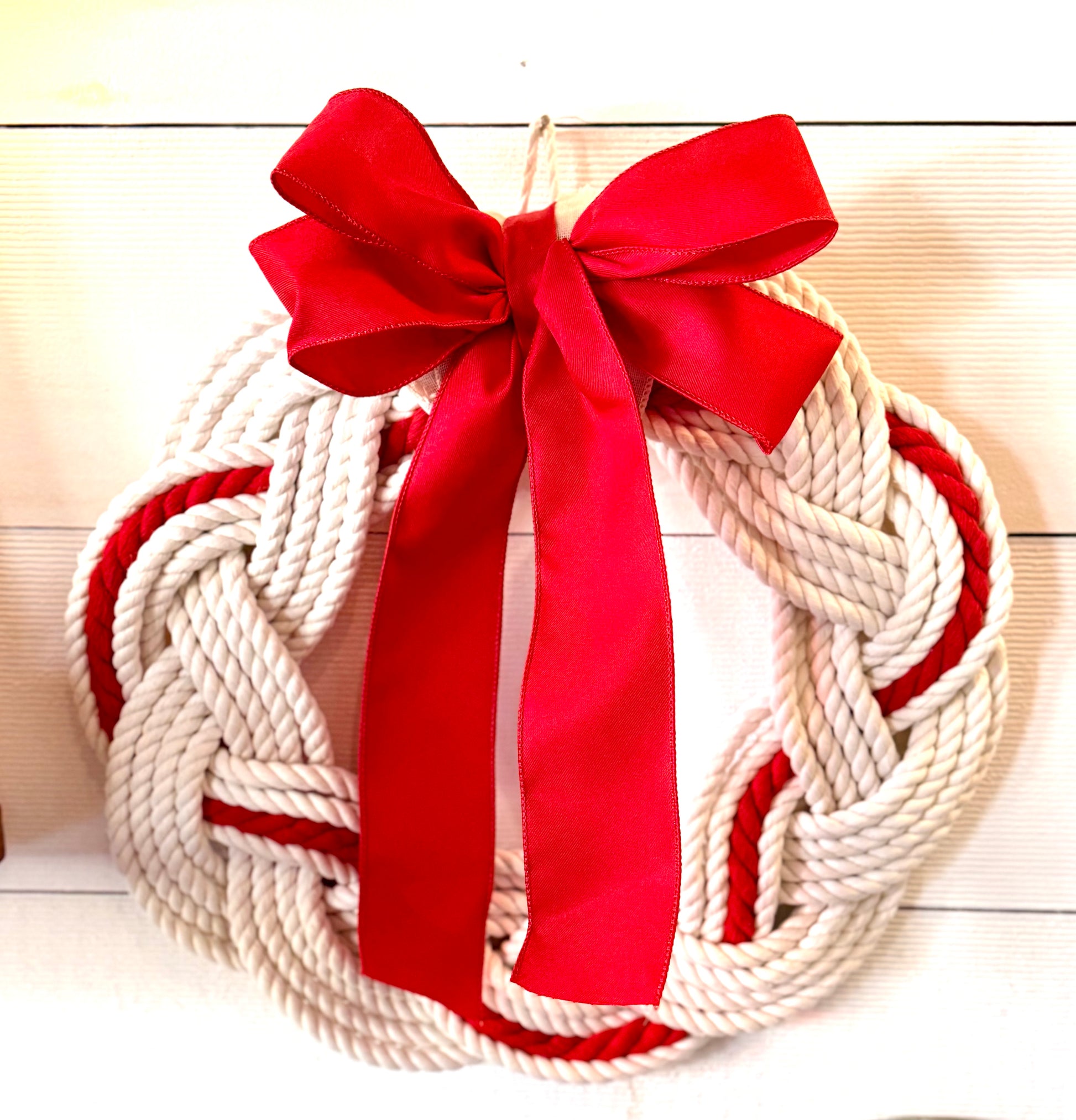Named after the cutest little secluded beach off the North River in Marshfield, Ma. Introducing our 16" Red and White Rope Wreath, perfect for adding a touch of nautical charm to any home decor. Made with high quality durable red and white rope and adorned with a matching bow, this wreath is sure to make a statement. Bring the seaside into your home with this stylish piece.